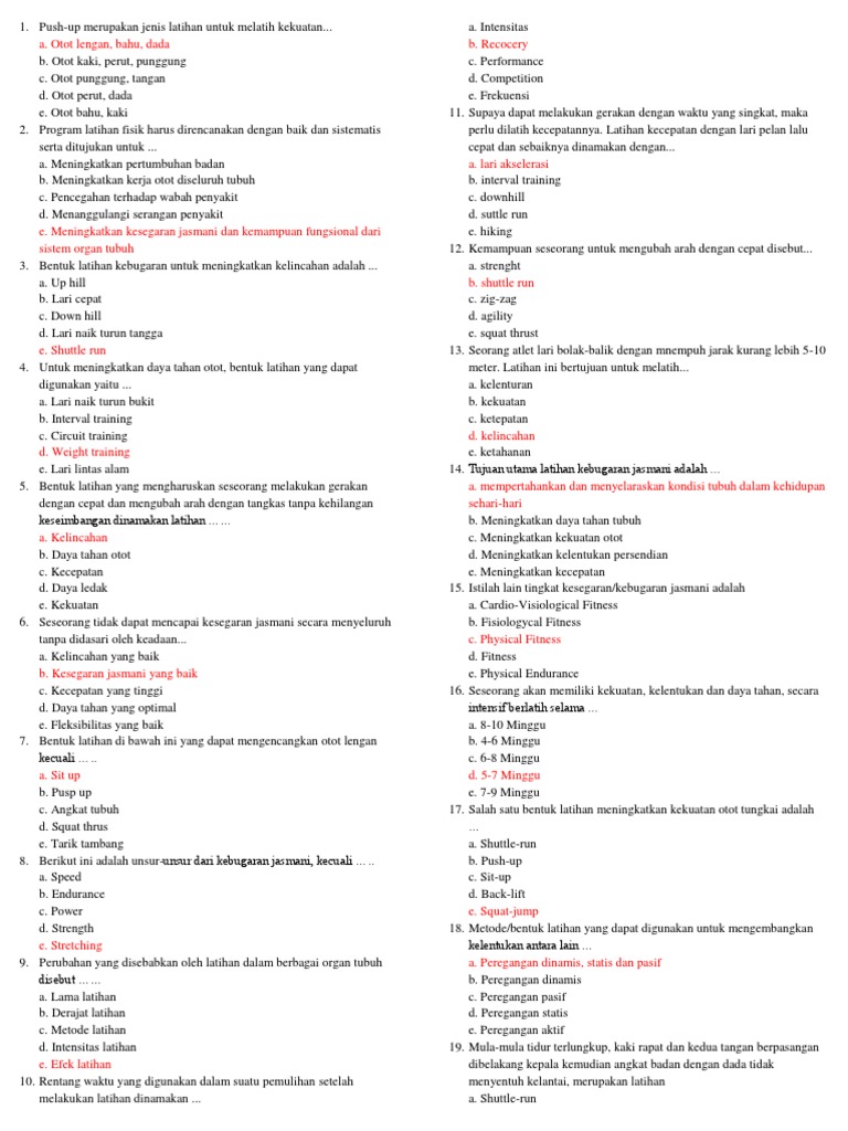 Soal pendidikan jasmani dan rohanidocx - 1 Push-up merupakan. Perubahan Fungsi Organ Pada Geriatri. Fisiologi Olahraga Adalah bagian atau cabang dari fisiologi yg khusus mempelajari perubahan fungsi yang disebabkan oleh latihan fisik.
