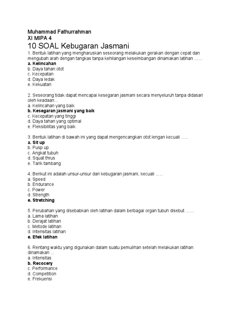 Soal Jawab Penjaskes Sma Vi Soalujian Net